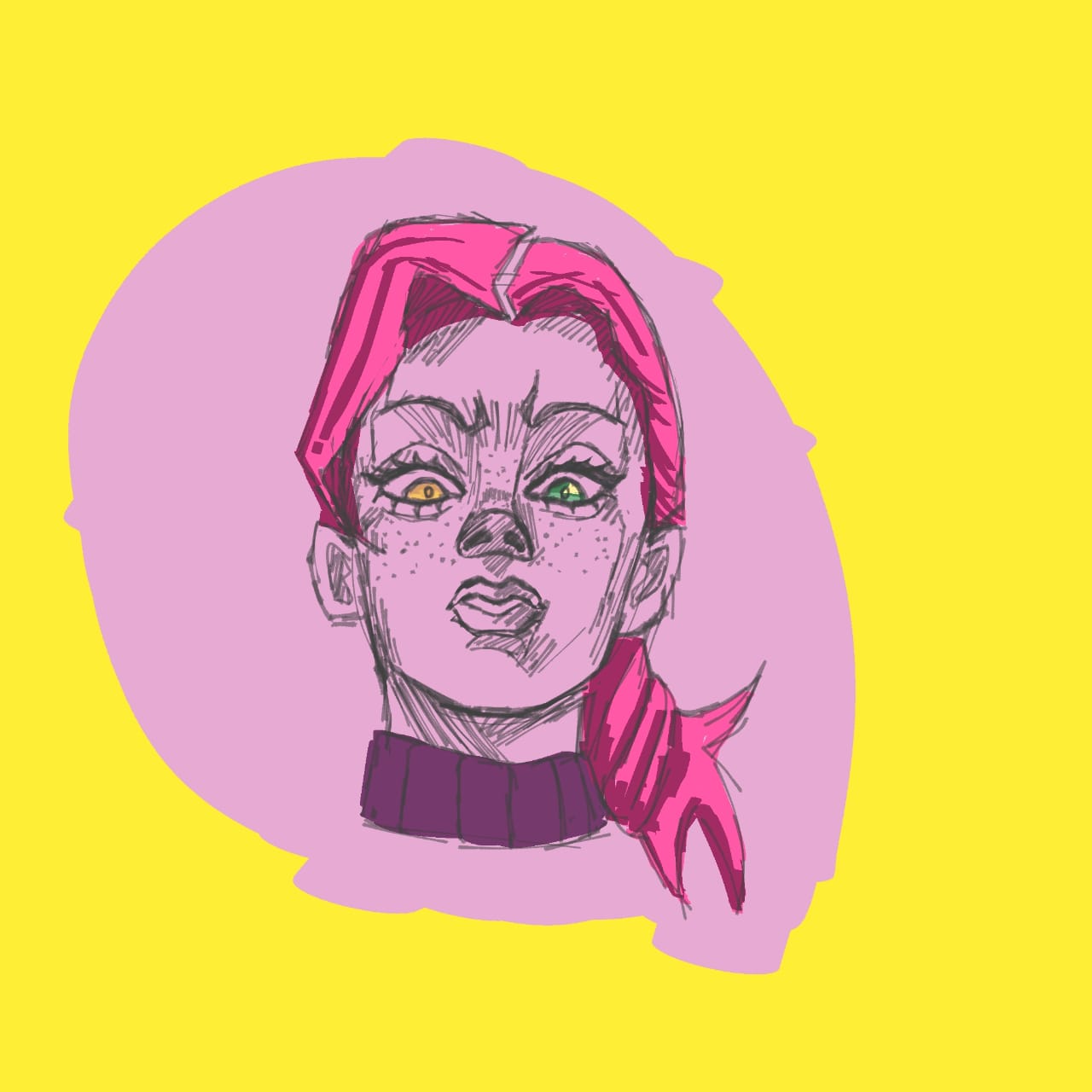 Personaje de la franquicia Jojo's Bizarre Adventure para práctica de perspectiva facial.