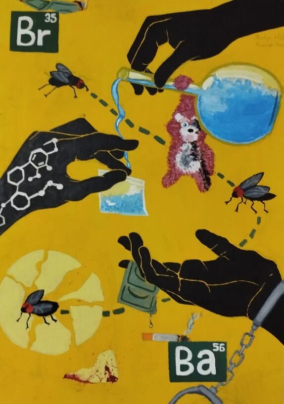 Ilustración tradicional en acrílico, trabajo conceptual de la serie de televisión Breaking Bad.